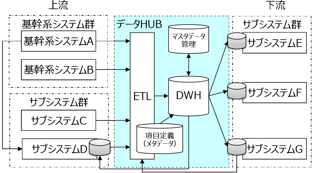- 下流のサブシステム毎にデータマートを作成しなければならず、改修コストの圧縮効果が薄い。